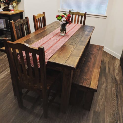 Bench style dining table. Heres another log cabin style dining set with bench. We have a myriad of styles of dining table sets and if you want to narrow your options to something more specific than your current filter of dining set configuration. The wood used is white cedar. From the latest styles of kitchen tables to dining benches ashley homestore combines the latest trends with technology to give you the very best for your home.