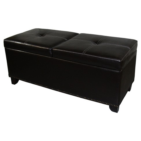 Durable Dark Brown Leather Like Vinyl Storage Ottoman Bench