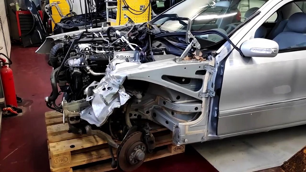 Mercedes W211 Frontal Damage Setup On The Celette Bench Video