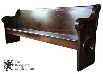 Antique Victorian Church Pew 7 Foot Deacon Hall Bench Scrolled Arm