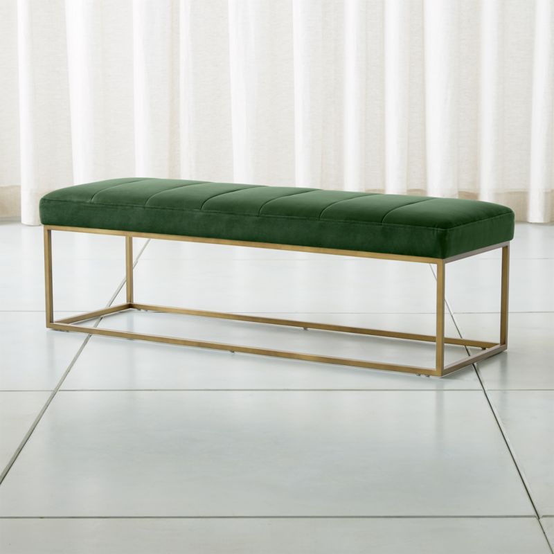 Channel Dark Green Velvet Bench With Brass Base Crate And Barrel