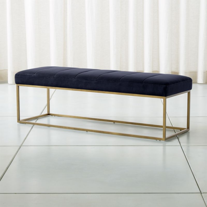 Channel Navy Velvet Bench With Brass Base Reviews Crate And Barrel